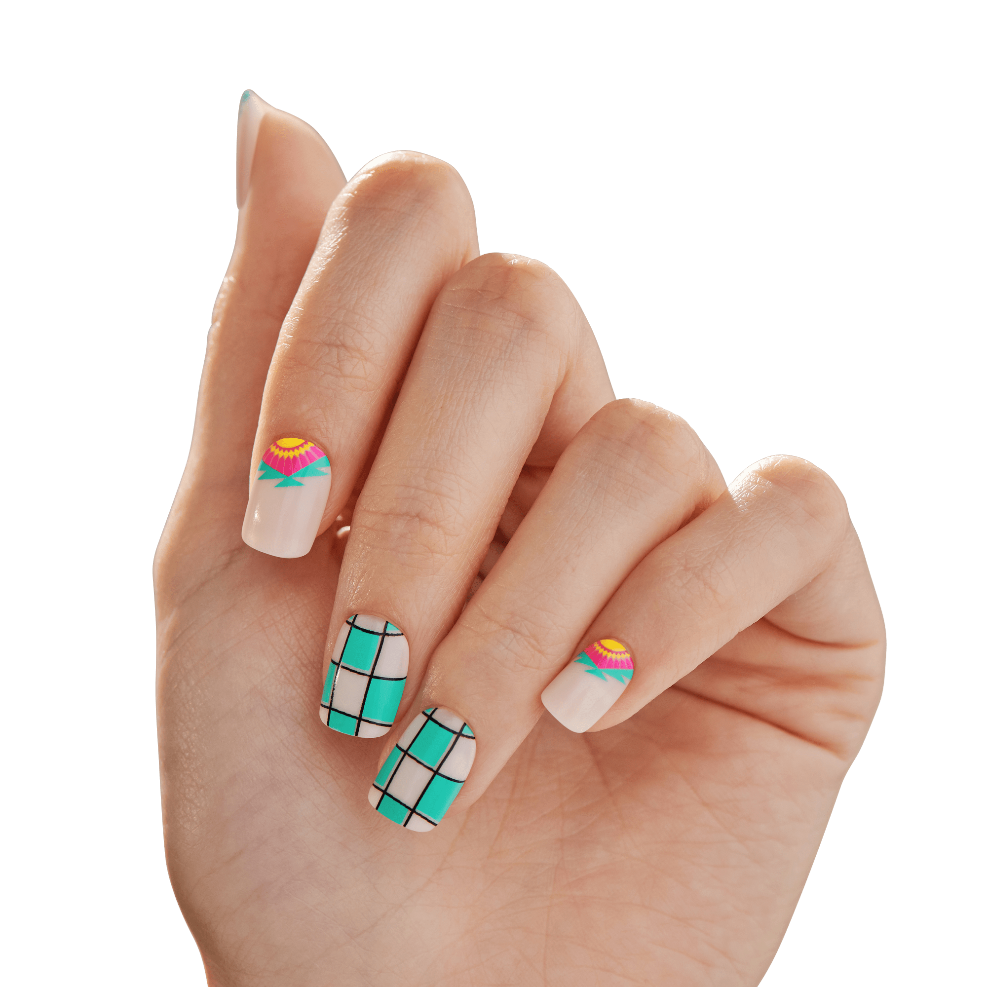 - The EASIEST manicure with pre-applied adhesive – just peel. press & go